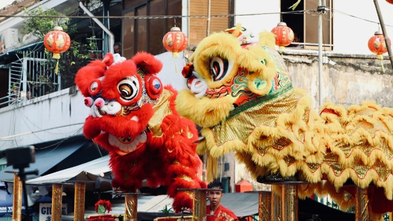 Beyond our homes, the communities gather with the sound of drums and cymbals during lion and dragon dances. These lively performances are believed to chase away evil spirits and bring good luck for the community. The lion symbolises luck and happiness, while the dragon represents bravery and power.
